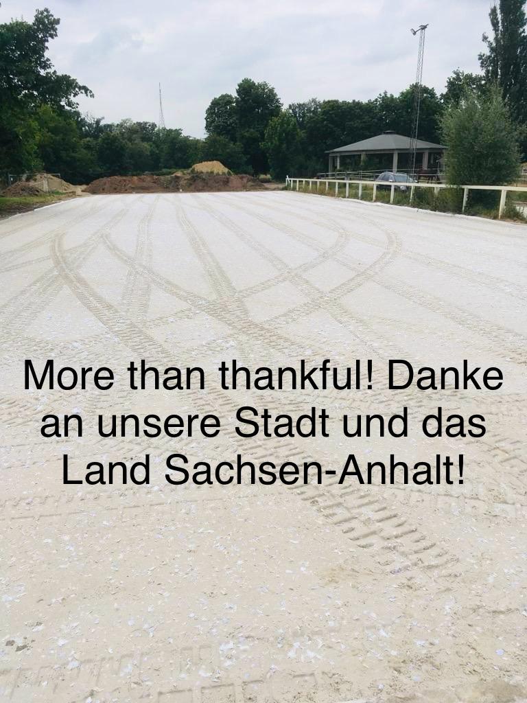 Im Juni 2021 konnten wir unseren großen Reitplatz dank der Förderung durch das Land Sachsen-Anhalt und der Stadt Magdeburg zu einem Ebbe-Flut-Platz umbauen.